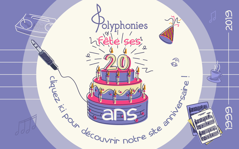Le 1er avril 1999, il y a 20 ans, Polyphonies ouvrait grand ses portes et nous nous lancions frais émoulus dans le développement de notre projet, quelque peu risqué : donner des cours de composition à distance ! Autant dire que nous n’avons pas écouté les avis de personnes raisonnables... et finalement nous avons bien fait : l’heure étant au bilan, nous avons recueilli bien des motifs de satisfaction, dont le plus fort est le témoignage de nos anciens élèves. Qu’ils furent ceux de la première heure ou bien récemment sortis lauréats de nos bancs, leurs lignes nous sont allées droit au cœur. Nous vous les livrons in-extenso dans notre Livre d’or, en témoignage de notre reconnaissance émue. C’est ici !